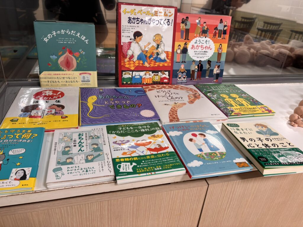 性教育の本、妊娠の仕組みを伝える絵本などをお持ちして、皆さんに見ていただきました。